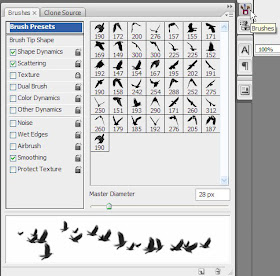To scatter a brush shape about randomly in different sizes and at different angles, click on your brush tool.