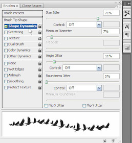 Now, click on "Scattering," and then set the sactter slider as low or high as you'd like. You can see how much it's scattering in the thumbnail. Click on "Brush Tip Shape." Move the "Spacing" slider to the right until the brush is spaced how you'd like. Make sure the rest is set at 0% or off.